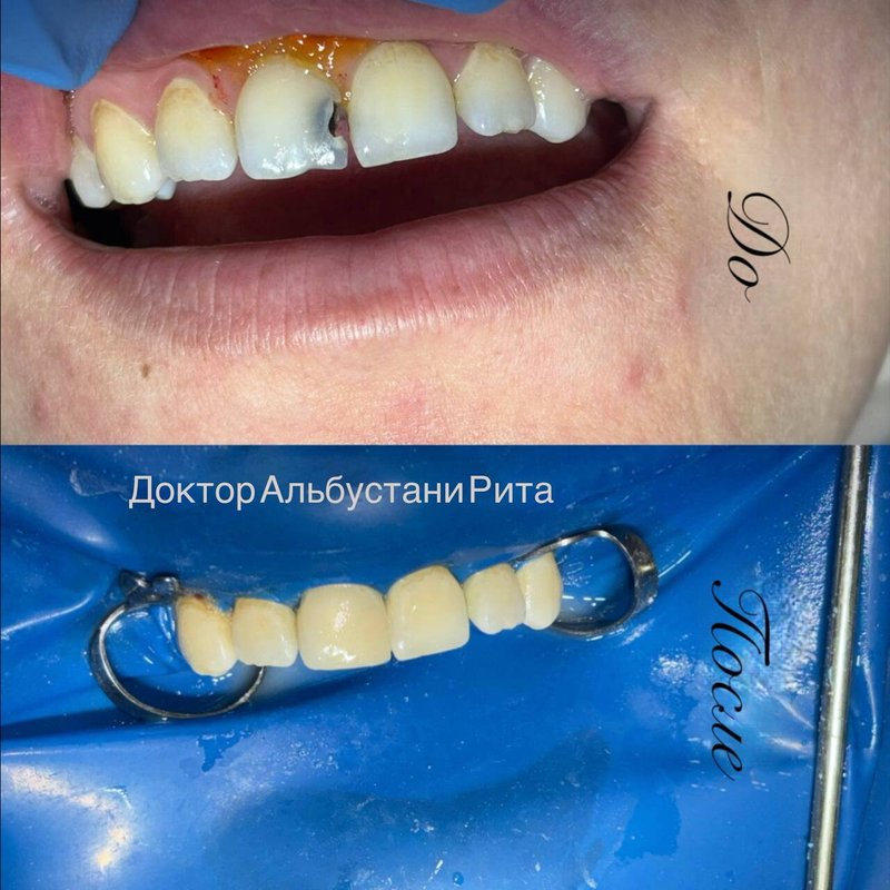 Проблема со сколом зуба. Рита Альбустани разобралась в проблеме и предложила путь решения. Процедура прошла гладко и без боли - доктор оказалась настоящим профессионалом! насколько тонко и изящно восстановила зуб, что сложно отличить от своих здоровых зубов. Очень благодарен Альбустани Рите за оказанную квалифицированную помощь! Всем рекомендую данного врача, у нее золотые руки.